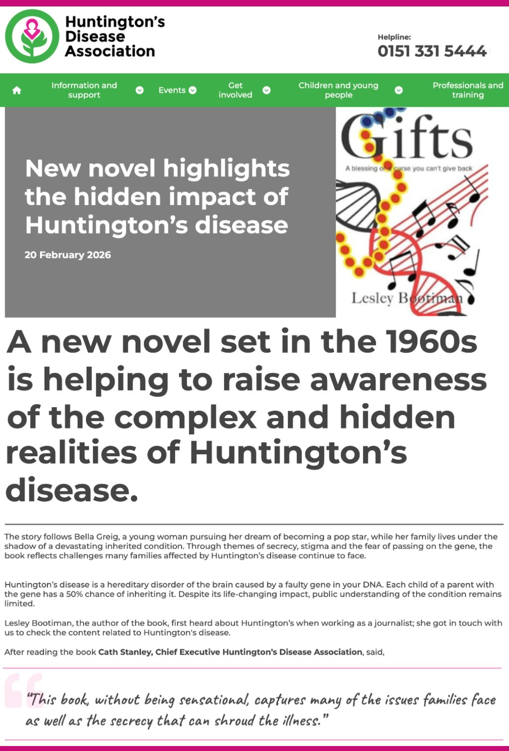 A recent post from the Huntington's Disease Association